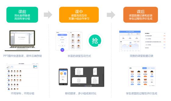 普教版智慧課堂方案圍繞小組合作學習(xi) 的全流程進行了設計,以“愛課堂”為(wei) 平台,將極簡應用、師生互動、生生互動貫穿“課前、課中、課後”全流程。課堂上,老師以銳捷的“愛課堂互動教學係統”為(wei) 核心,配合學生反饋器的使用,能夠實現簡單、實用的課堂即時互動教學及反饋。同時,係統還可以將課堂生成的互動數據,自動、完整地記錄在課堂報告中,作為(wei) 學情分析的數據來源和積累,為(wei) 學生的持續發展、課堂的持續優(you) 化提供強大推力。