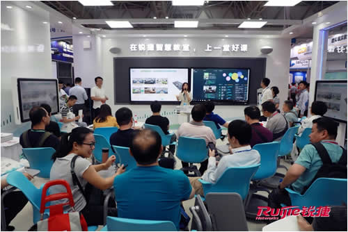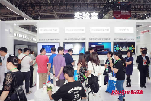 在基礎網絡展區,銳捷網絡展示了極簡智慧校園全場景解決(jue) 方案,通過在基礎網絡領域的極簡設計、極簡運維和開放兼容的理念下的解決(jue) 方案,幫助高校信息部門提升基礎網絡的服務能力,從(cong) 而促進教育和教學變革的加速發生。