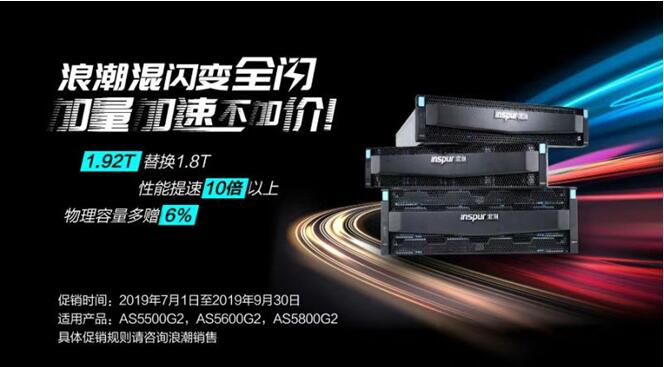 麵對市場和用戶對全閃存儲(chu) 的需求, 7-9月,浪潮提出了全閃存儲(chu) 置換計劃,以1.92T SSD替換1.8T HDD,物理容量多送6%,性能提速10倍以上。參與(yu) 此次促銷的產(chan) 品包括AS5500G2、AS5600G2和AS5800G2。