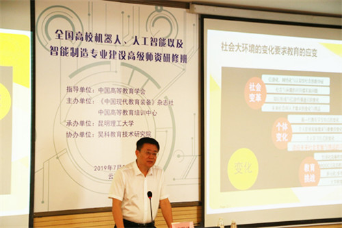 2019年7月28日,由中國高等教育學會(hui) 指導,《米兰竞技足球俱乐部》雜誌社和中國高等教育培訓中心主辦,昆明理工大學承辦,昊科教育技術研究院協辦的“全國高校機器人、人工智能以及智能製造專(zhuan) 業(ye) 建設高級師資研修班”在昆明理工大學順利開班。共有來自全國20餘(yu) 所高校的近50名學員報名參加本次研修班。