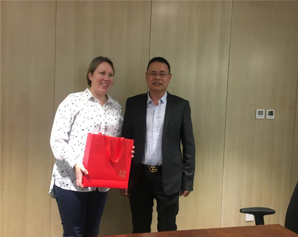 最後,康邦常務副總裁溫作斌與(yu) Caroline Wright女士互相交換禮品,以表心意,此次參觀交流圓滿結束。