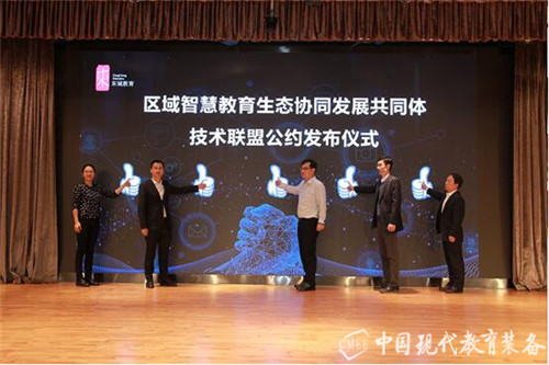 會(hui) 上,天聞數媒科技(北京)有限公司等5家技術聯盟企業(ye) 代表共同發布了技術聯盟公約,表態互助合作,充分發揮各自企業(ye) 優(you) 勢形成聚合之勢,共享智慧教育發展新成果,全力推進智慧教育示範區各項建設。