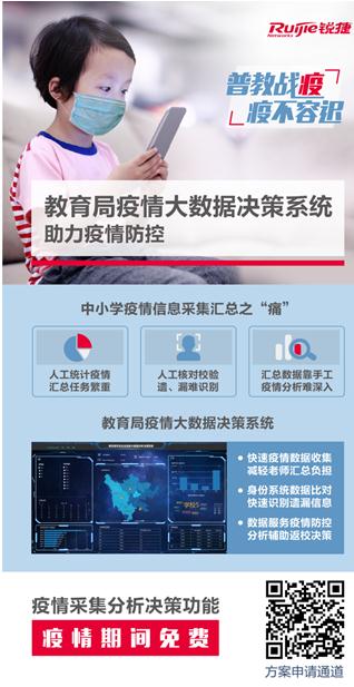 深耕教育行業(ye) 20餘(yu) 年的銳捷網絡,第一時間深入調研全國中小學疫情統計困難,推出滿足普教用戶實際需求的疫情大數據決(jue) 策方案。