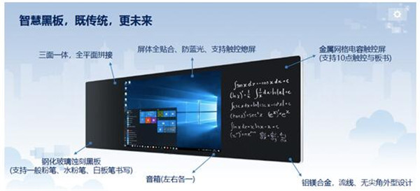 教室裏,學生打鬧是常有的事情,鑒於(yu) 此,智慧黑板采用全鋁鎂合金、無邊角安全設計,加之有超強抗衝(chong) 擊效果的高強度鋼化玻璃,為(wei) 師生安全提供保障;極佳的散熱效果,開機8小時升溫也不到2℃,這讓老師的使用體(ti) 驗更舒適;屏體(ti) 的全貼合技術,既有效減少粉筆灰塵入屏體(ti) 的情況發生,又提高了觸控書(shu) 寫(xie) 體(ti) 驗,為(wei) 師生提供更為(wei) 清晰的圖像顯示;其貼心的五指息屏亮屏、為(wei) 嬌小型老師設計的下拉窗口等亮點,無不彰顯人性化設計,讓科技感與(yu) 實用性充分融合。