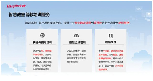 在這一方麵,服務教育二十年的銳捷,不僅(jin) 將持續提供一流的售後服務,在教學軟件的應用上上還提供專(zhuan) 業(ye) 的培訓服務,保障教學場景下的更好適配。