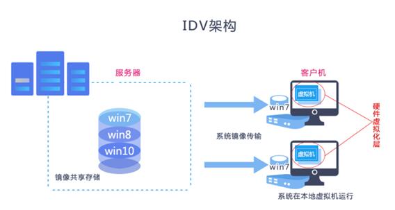 基於(yu) 多媒體(ti) 教室的特點,在方案和技術上智能桌麵虛擬化架構(IDV,Intelligent Desktop Virtualization)更合適: