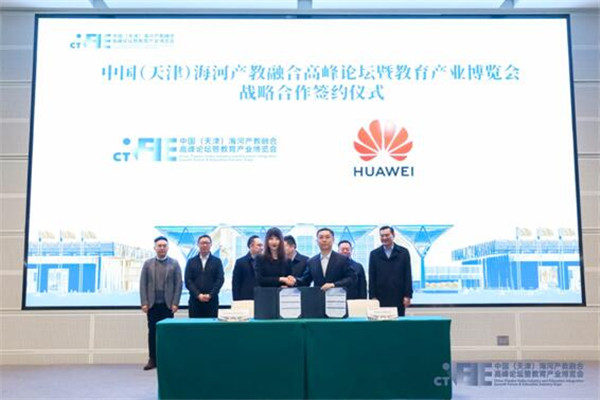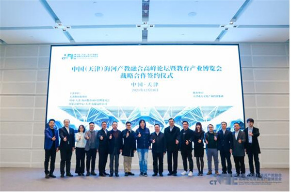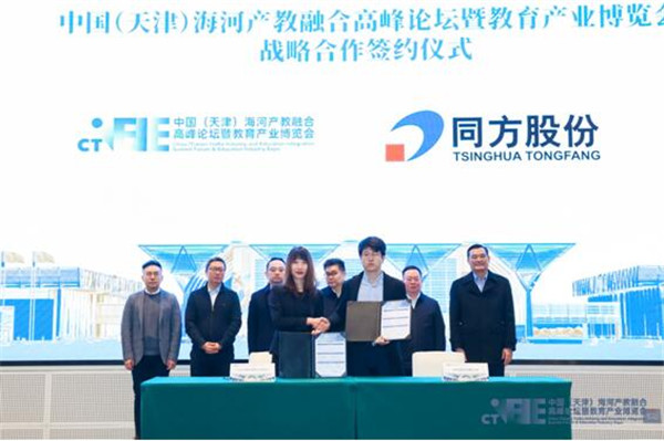 2021年12月10日,中國(天津)海河產(chan) 教融合高峰論壇暨教育產(chan) 業(ye) 博覽會(hui) 戰略合作簽約儀(yi) 式在國家會(hui) 展中心(天津)成功舉(ju) 辦。天津市商務局總會(hui) 計師劉誌勇;津南區委常委、區委辦公室主任,海河教育園區管委會(hui) 專(zhuan) 職副書(shu) 記、常務副主任郭建華;天津北方文化產(chan) 業(ye) 投資集團股份有限公司總經理李剛;中國對外貿易中心副主任、國家會(hui) 展中心(天津)有限責任公司黨(dang) 委副書(shu) 記、副總裁王彥華;天津教育報刊社社長劉延軍(jun) ;CTEIE教育博覽會(hui) 籌備工作組組長王玨等領導出席活動。天津新東(dong) 方學校、九拍教育科技集團、天津佳沃世界運營管理有限公司、英孚教育、華為(wei) 技術有限公司、同方股份有限公司、中國聯通、富力地產(chan) 分別與(yu) 主辦方簽署了《CTEIE教育博覽會(hui) 展會(hui) 合作協議》。