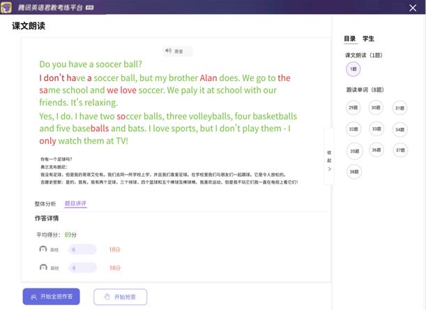 全班齊作答、發音秒評分,深圳市龍崗區外國語學校借力AI精準把脈課堂學情融聽說互動於(yu) 在線課堂教學,騰訊英語君助力深圳疫情防控期間在線教學場景升級服務課中測評反饋與(yu) 課後作業(ye) 設計,騰訊英語君以AI創新英語聽說教學方式