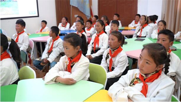 圖注:四川若爾蓋達紮寺小學的同學們(men) 在大屏前聽課