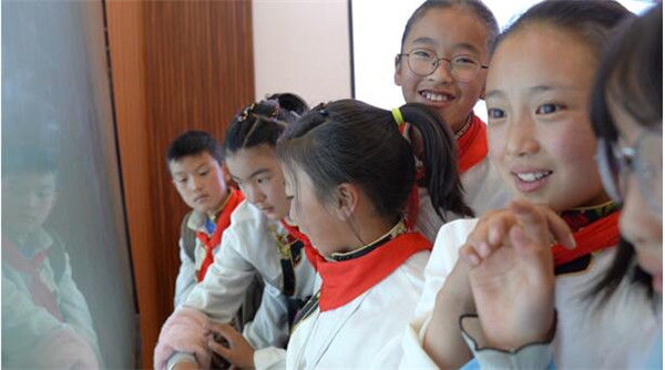 益僖娜姆就在這塊屏裏看到了更大的世界。這節課之前,這位10歲的藏族女孩去過最遠的地方是青海湖。這次,她通過一塊屏見到了天津的車水馬龍和河南的名勝古跡。