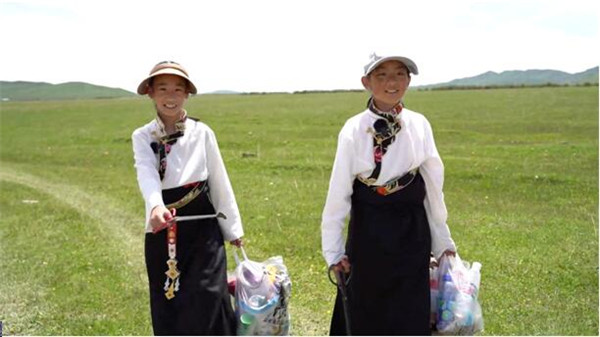 圖注:益僖娜姆和小夥(huo) 伴在草原撿垃圾做環保