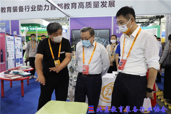 北京市教委副主任柳長安、二級巡視員葛巨眾(zhong) 在裝備展區指導