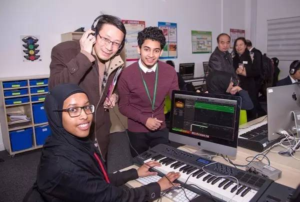 這是Regent High School(攝政高中)的一節音樂(le) 課,學生正在使用一款蘋果公司的數碼音樂(le) 創作軟件GarageBand自我合成音樂(le) 。軟件中含有配器、節奏、音色等多種選擇,學生可以在這上麵結合音樂(le) 知識的學習(xi) ,實踐、感悟、創作。它不僅(jin) 使學生對音樂(le) 的理解得以充分展現,還能製作屬於(yu) 自己的音樂(le) 。從(cong) 他們(men) 的笑臉中我們(men) 看到了成功的喜悅。