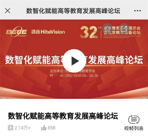 本屆展會(hui) 繼續采用線上線下融合方式,聚焦教育數字化轉型,順利舉(ju) 辦了由北京市高等教育學會(hui) 主辦的數智化賦能高等教育發展高峰論壇和由北京市數字教育中心(北京電化教育館)主辦的2023年北京教育數字化高峰論壇。直播平台數據顯示,數智化賦能高等教育發展高峰論壇的在線直播觀眾(zhong) 超過21400人。北京市高等教育學會(hui) 會(hui) 長線聯平,北京市教育委員會(hui) 教育信息化處處長張憲國,北京市數字教育中心主任武裝,北京教育裝備行業(ye) 協會(hui) 會(hui) 長柴旭津等出席了論壇活動。