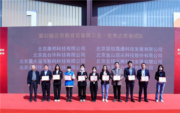 第32屆北京教育裝備展示會(hui) ·優(you) 秀誌願者團隊有:北京康邦科技有限公司、北京鑫台華科技有限公司、北京晨光溢海數碼科技有限公司、北京友邦佳通電子科技有限公司、北京國信晟通科技發展有限公司、北京金山頂尖科技股份有限公司、北京宏揚迅騰科技發展有限公司、北京中天瑞合科技有限公司。