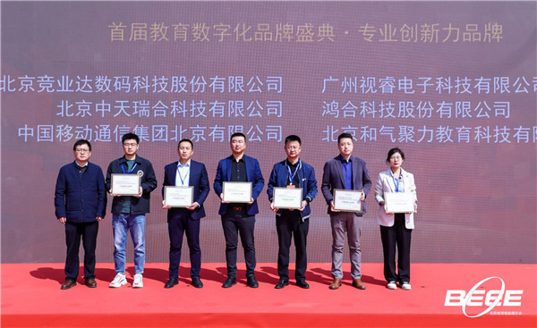 獲得首屆教育數字化品牌盛典·專(zhuan) 業(ye) 創新力品牌的企業(ye) 有:北京競業(ye) 達數碼科技股份有限公司、北京中天瑞合科技有限公司、中國移動通信集團北京有限公司、廣州視睿電子科技有限公司、鴻合科技股份有限公司、北京和氣聚力教育科技有限公司。