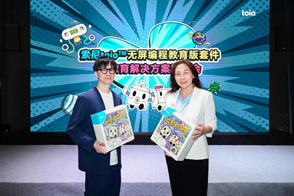 索尼互動娛樂(le) 公司toio™業(ye) 務拓展辦公室總監中山哲法、索尼中國教育事業(ye) 部總經理趙威共同發布“出發!探索編程世界™教育版”