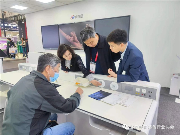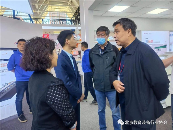 10月20日,第82屆中國教育裝備展示會(hui) 在國家會(hui) 展中心(天津)開幕。本屆展示會(hui) 為(wei) 期3天,以“數字賦能教育、創新引領未來”為(wei) 主題,采取線上線下融合辦展模式。展示會(hui) 展出麵積近20萬(wan) 平方米,共吸引海內(nei) 外1100多家企業(ye) 攜1.2萬(wan) 餘(yu) 件展品參加。北京代表團共60家企業(ye) (會(hui) 員42家,非會(hui) 員18家)參展,展位數量共計668個(ge) (特展560個(ge) ,標展108個(ge) )。北京市數字教育中心主任武裝、北京教育裝備行業(ye) 協會(hui) 會(hui) 長柴旭津蒞臨(lin) 現場參觀指導,北京教育裝備行業(ye) 協會(hui) 秘書(shu) 長陳謙陪同。北京市10餘(yu) 個(ge) 區教育裝備部門組織中小學校長、教育裝備管理人員100餘(yu) 人參觀展會(hui) 。