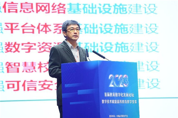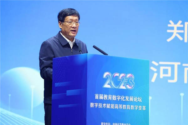 刁玉華指出,本次論壇的目標是探索全麵和徹底的數字化轉型,構建數據驅動、人技結合、跨界開放的新型教育生態,打造更加適切、完備、開放、公平、卓越和可持續的高等教育新體(ti) 係。刁玉華表示,河南作為(wei) 教育大省,高度重視教育數字化工作,不斷堅持以頂層設計引領帶動、以新型基建構建生態、以項目牽引探索創新、以強化素養(yang) 築基提能,大力推進信息基礎設施建設,持續擴大優(you) 質數字教育資源覆蓋麵,為(wei) 深化數字化轉型奠定堅實基礎。刁玉華強調,各高校要革新數字化轉型的核心理念,以數字變革驅動教育創新發展;要找準數字化轉型的有效路徑,形成教育教學綜合服務體(ti) 係;要加速數字化轉型的環境構建,統籌布局、協調聯動,為(wei) 教育數字化轉型錨定目標、繪就藍圖。