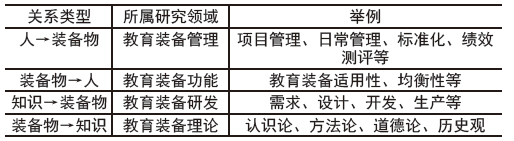 教育裝備的研究對象是教育教學係統中的裝備物,但是對它的研究應該是“見人見物”的,即研究內(nei) 容必須是構成教育教學係統中的人、知識、裝備物之間的和諧關(guan) 係。於(yu) 是便產(chan) 生了4種類型的研究內(nei) 容:一是人對裝備物的關(guan) 係;二是裝備物對人的關(guan) 係;三是知識對裝備物的關(guan) 係;四是裝備物對知識的關(guan) 係。這些關(guan) 係及相關(guan) 的研究內(nei) 容開列在表1中。