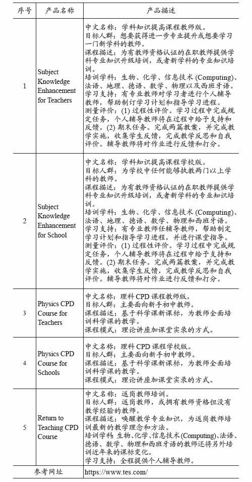 表2開列了TES Global公司教師CPD培訓工具軟件平台中學科知識培訓類的產(chan) 品。