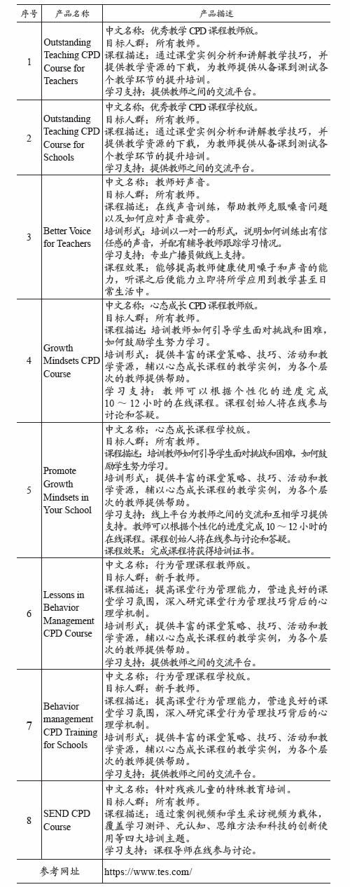 表3開列了TES Global公司教師CPD培訓工具軟件平台中教學技能培訓類的產(chan) 品。