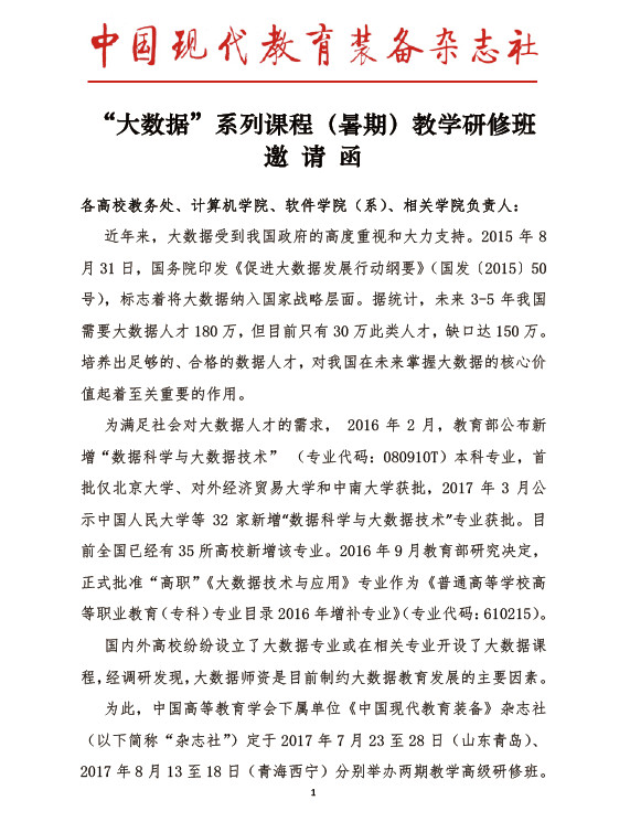 [導讀]《米兰竞技足球俱乐部》雜誌社(以下簡稱“雜誌社”)定於2017年7月23至28日(山東青島)、2017年8月13至18日(青海西寧)分別舉辦兩期“大數據”係列課程(暑期)教學研修班