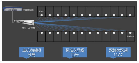 銳捷“智分+”解決(jue) 方案采用創新的“主機+微AP”多級分布式架構,AP主機部署在弱電間,微AP直接部署在宿舍內(nei) ,采用標準網線連接。微AP支持壁掛吸頂安裝或嵌入86麵板,安裝靈活方便又美觀,僅(jin) 僅(jin) 用了3個(ge) 月時間就完成了所有學生宿舍的綜合布線和安裝調試。“智分+”為(wei) 每間宿舍提供獨享的2.4G的300Mbps和5G的867Mbps極限速率,輕鬆應對宿舍多人、多終端、重載、大流量考驗。