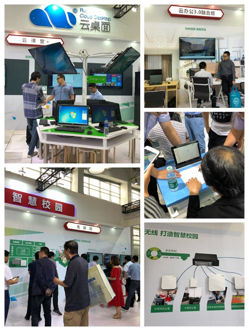 在本次展會(hui) 上,銳捷網絡推出的創新解決(jue) 方案包括:為(wei) 互動教學打造極致體(ti) 驗的智慧雲(yun) 課堂1.0、可同時管理IDV和VDI終端並靈活部署在教育局和學校的雲(yun) 辦公3.0融合版;支撐教育管理、體(ti) 育教學、校園安全和生活等多項應用的智慧校園物聯網方案、無線校園解決(jue) 方案等,這些方案的亮點與(yu) 特性吸引了眾(zhong) 多參觀者駐足。與(yu) 此同時,銳捷網絡體(ti) 驗中心還組織了觀摩活動,與(yu) 教育領域CIO們(men) 深入交流教學信息化的應用與(yu) 實踐。