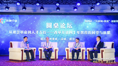 圓桌論壇環節,首先呈現了由中關(guan) 村互聯網教育創新中心出品的《中國教育40年回顧》短片。在北京大學教育學院副院長尚俊傑的主持下,中國教育學會(hui) 會(hui) 長、國家教育谘詢委員會(hui) 委員鍾秉林,國務院扶貧辦友成企業(ye) 家扶貧基金會(hui) 常務副理事長湯敏,中國人民大學附屬中學校長翟小寧共同探討了過去40年教育取得的成就及未來展望。