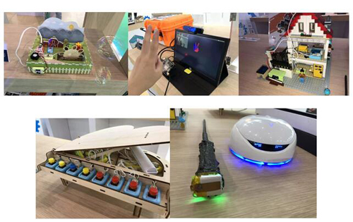 除創客教育套件外,此次蘑菇雲(yun) 創客教育還為(wei) 大家展示了基於(yu) 創客教育套件製作的創意小發明,如基於(yu) boson模塊製作的泡泡機、智能生活屋和鋼琴,基於(yu) “拿鐵熊貓”(LattePanda)的麵部/手勢識別,用魔法棒操控的Vortex機器人等等。