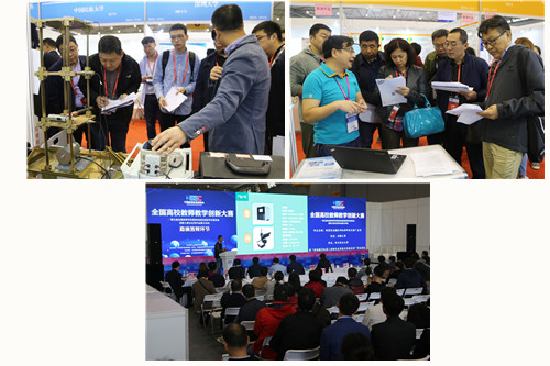 自製教具大賽自2018年5月啟動以來,受到全國各高等院校一線教師的廣泛關(guan) 注。在初賽階段,收到了來自全國196所高校的600餘(yu) 件參賽作品,經評審專(zhuan) 家“公平、公正、公開”的評審與(yu) 篩選,推薦了132所高校教師提交的249件作品進入決(jue) 賽階段。區別於(yu) 往屆大賽,本次大賽的決(jue) 賽階段不僅(jin) 設置了已形成傳(chuan) 統的終評分項競賽,還首創性地設置了商業(ye) 路演分項競賽。終評競賽主要從(cong) 作品的教學型、科學性、創新性、啟發性、實用性幾個(ge) 角度考評作品,而商業(ye) 路演競賽則在此基礎上,進一步對作品的商業(ye) 性、轉化性、投資性進行側(ce) 重考量。為(wei) 充分展示參賽作品及教師的風采,大賽組委會(hui) 在中國高等教育博覽會(hui) (2018年·秋)現場免費設置了具有164個(ge) 展位,近1500平方米的“自製教具作品展區”,將每一件作品進行充分展示,也吸引了來自全國各高校實驗教師的關(guan) 注與(yu) 好評,他們(men) 駐足參觀,熱烈交流,共同探究破解實驗教學難點、重點的新方法、新途徑。