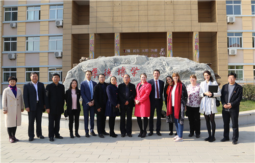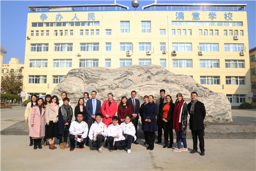 來賓與(yu) 校領導在學校“標誌地標”前合影留念