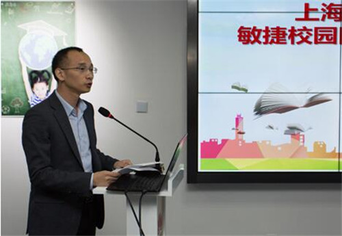 2018年11月20日下午,“智慧校園環境下的教育教學變革”教學展示暨論壇活動“敏捷校園網絡樣展示點揭牌儀(yi) 式”在上海市浦東(dong) 教育發展研究院教育信息中心成功舉(ju) 行。