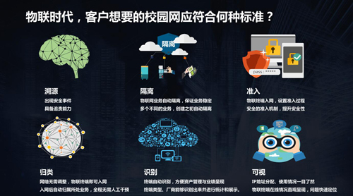 近幾年,在智慧校園、平安校園、節約型校園等建設理念的落地過程中,國內(nei) 高校各部門充分利用信息化工具,通過信息化提升學生生活體(ti) 驗、提高教師教學質量和效率。而麵對海量物聯終端入網,傳(chuan) 統構架下的校園網建設不可避免的會(hui) 有部門配合效率低,資源複用難,安全溯源能力弱等問題。