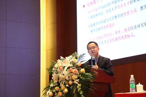 中國高等教育學會(hui) 實驗室管理工作分會(hui) 副理事長、清華大學實驗室與(yu) 設備管理處處長黃開勝作報告